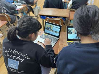 社会では、長く続く戦争の時代について学習がスタートしました。今日はその導入ということで、広島の原爆ドームについて知ったり、実際に戦争を経験した方々のインタビューを視聴したりしました。過去にあった出来事ではなく、今の自分や社会にもつなげて色々なことを考えてほしいと思います。