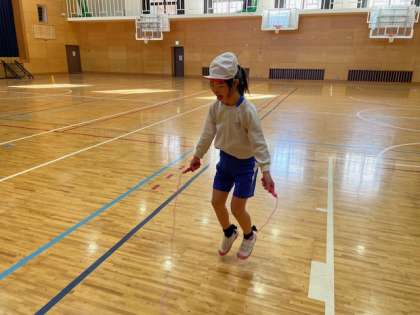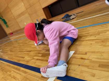3組の体育では,ランニングやストレッチ,縄跳びをしています。寒い中ですが,子どもたちは元気いっぱい体を動かしています。体育が終わるころには,「暑い〜」と言っている子もいました!