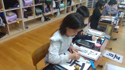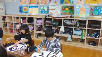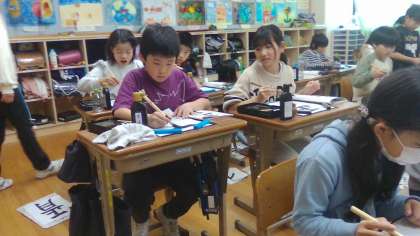 今回は名前も小筆で書きました。3年生から始まった毛筆の学習ですが、少しの期間でとても上手に書けるようになりました。