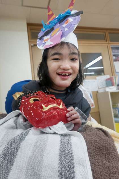 先日,生活単元学習で豆まきをしました。