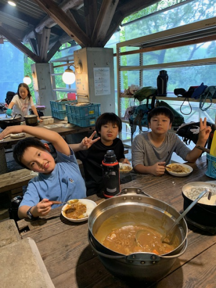 おかわりしてたくさん食べました。「まだまだ花背に泊まっていたい!」という声も聞こえ、2泊3日で成長した笑顔が輝いていました。