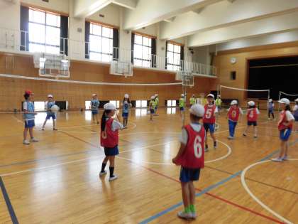 ルールやボールの扱いが難しいようでしたが、チームで声を掛け合いながら元気に活動していました。