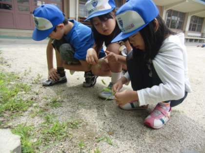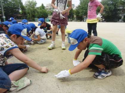 今日6月27日は,ココロ・エコロクリーンデーでした。2年生と5年生は元植柳小学校の校庭の清掃活動に取り組みました。地域の方々のお力もお借りして,一生懸命草を引いたりゴミを拾ったりしました。