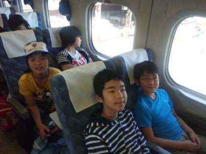 列車の旅を楽しんでいます。友だちと話したり,山並みを車窓から眺めたりして,貴重な時間を過ごしています。