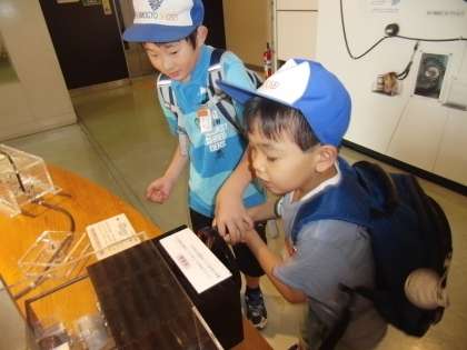 4年生と6年生が実験室学習をしている間,2,3年生は展示室を回って科学事象や生き物に触れました。触ったり動かしたりして反応がおこる様々な展示に,子どもたちは大喜び!「いっしょにやろう。」と友達を誘いあって遊ぶ姿は,ほほえましかったです。