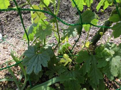 4年生で育てているツルレイシがグングンと成長しています。大きいものではつるが1メートル以上にもなっています!また,よく見ると花が咲いているものもあります。夏休みの間にどれだけ成長するのか楽しみです!8月1日のサマースクールでも,子どもたちに観察してもらいます。