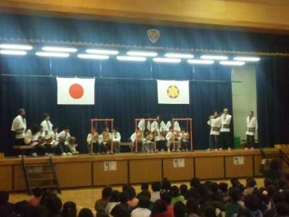 今日のお誕生日に,今年は「崇仁お囃子の会」のみなさんの伝統あるお囃子でお祝いしていただきました。下京渉成小学校の宝として,みなさんが,お囃子に参加できることも,お話いただきました。とてもうれしいことです。伝統継承,未来の芸術大学での活躍につながって欲しいと思います。