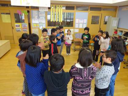イベント係の子どもたちが,クラスの友だちの誕生日をお祝いするためにお誕生日会を開きました。