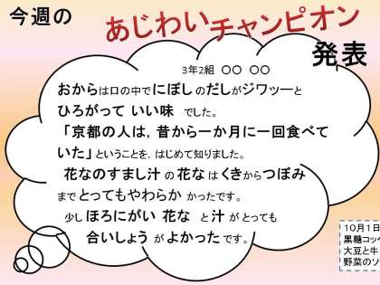 今週のあじわいキャンピオンは3年2組の児童です。