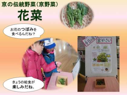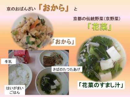 このような昔の人々の知恵や京都の食文化を子どもたちに知らせて,給食を味わいました。