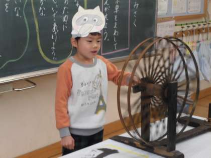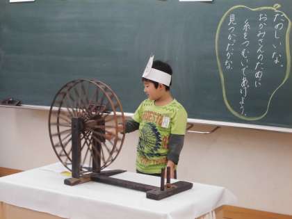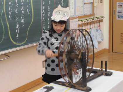 今日は,たぬきになりきって,糸車を回しながらたぬきの気持ちを考えました。