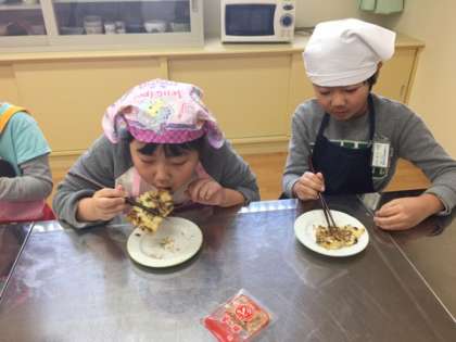 試食の時間では「外はカリッと,中はモチッとしておいしい」「ごま油とねぎが相性抜群」など,とても嬉しそうに表現していました。