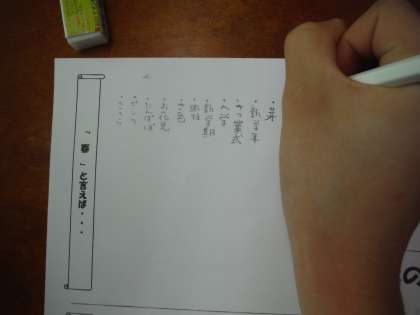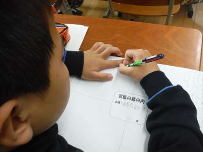 5年生では,語彙の力をつけるために「言葉の幕の内」という取り組みをしています。例えば,「春と言えば」というテーマなら,春を連想させる言葉を2分間でどんどん書いていきます。子どもたちは,自分の中から言葉をたくさん引き出そうと一生懸命です。言葉は読んだり意味を知っていたりするだけではなく,「使える」ことが大切です。楽しみながら,語彙を増やせるようにと思います。