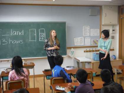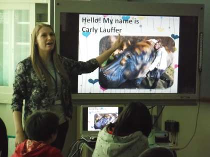 5年生の外国語活動の学習が始まりました。子どもたちは,初めての外国語活動ということで,最初は少し緊張していましたが,クイズなどの活動を通して楽しそうに活動をすることができました。