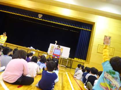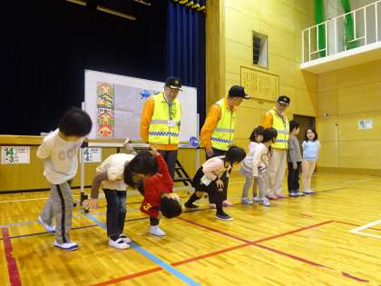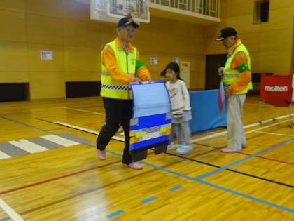 最後は,体育館に作られた道路を安全に通る練習をしました。