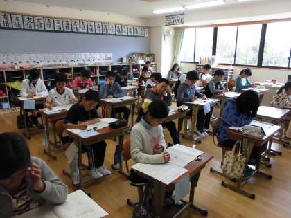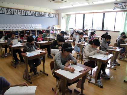 子どもたちは時間いっぱいを使って最後まで問題を解き,何度も見直しをしています。