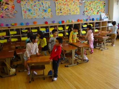 1年生も,お兄さん・お姉さんに教えてもらうことが