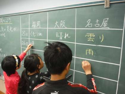 5年生の理科では,「天気の変化」について学習をしています。今回は,雲画像と雨量を参考にして,日本の各地の天気を調べました。調べる中で,天気がおよそ西から東へと変化していることに気付くことができました。