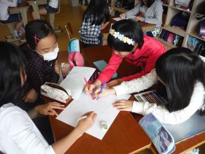 係活動の様子です。子どもたちは,活動内容や役割などを話し合っています。係活動の計画を考えている姿は,とても生き生きしています!このクラスでの係活動の姿が,委員会やクラブ活動でも見られるとうれしいですね!