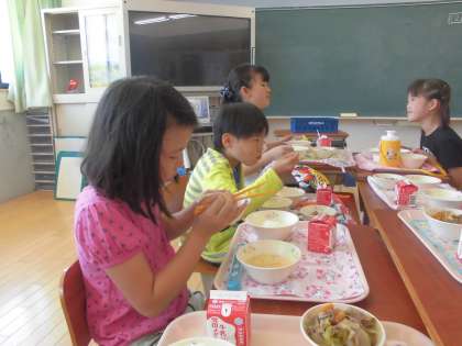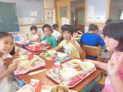 おいしそうに給食を食べる子どもたちの様子です。