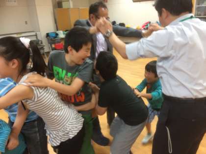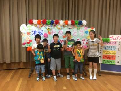 今日は,下京・東山支部の「入学・進級おめでとう会」がありました。バスに乗り,会場の光徳小学校へ行きました。はじめに自己紹介をしました。みんな上手に自分の名前を伝えられました。次に,みんなでゲームをしました。会場のみんなで盛り上がりました。短い時間でしたが,とっても楽しい会でした。