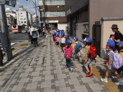 遠足に出発しました。