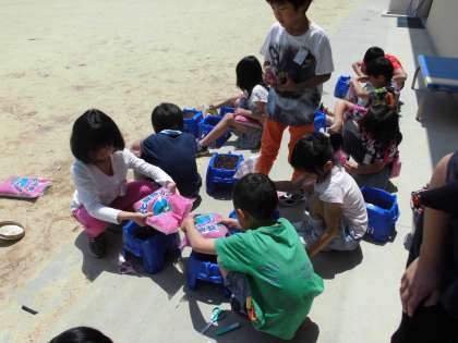 生活科では,植木鉢にミニトマトを育てていきます。