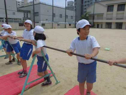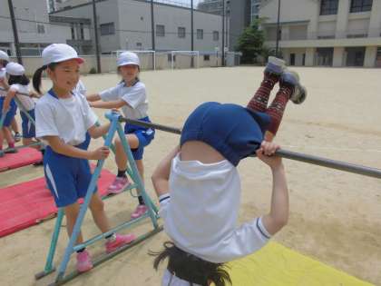 できる技を連続して挑戦したり,もう少しでできそうな技に挑戦したりしています。
