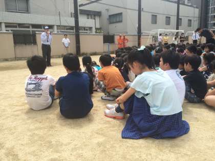 今日は,火災が起きたことを想定して避難訓練をしました。教室で火災が起こった時に気を付けることを話し合いました。「おはしもて」の合言葉と口にハンカチを当ててしっかり避難することができました。校長先生や消防署の人の話を聞いて,火事はいつ起こるか分からないので気を付けようと,みんなで話し合いました。