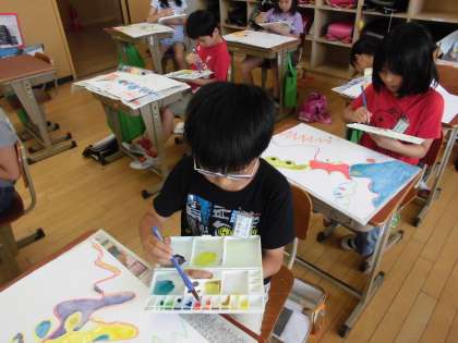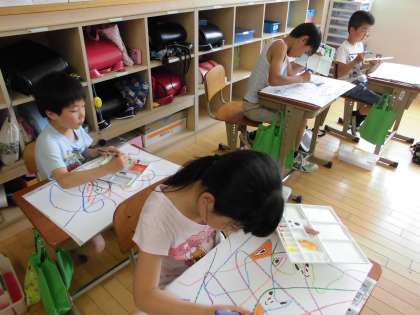 2色を混ぜて,細かいところまで丁寧に塗りました。