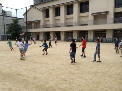 今日は、5年1組のみんな遊びがありました。交流クラスのみんなとドッヂボールを楽しみました。
