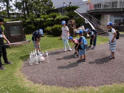 屋外活動では,空気砲を打ったり生き物に触ったりして楽しむことができました。