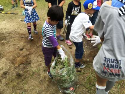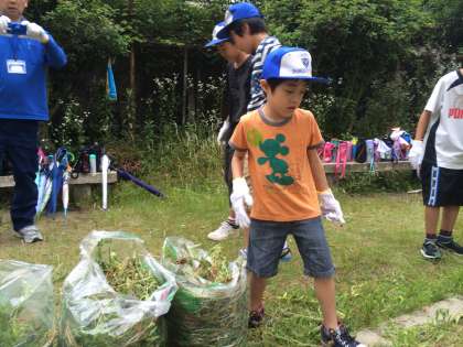 今日は,ココロ・エコロ・クリーンデーがありました。1年生と6年生は皆山公園を担当しました。6年生と1年生が力を合わせて公園の草抜きを頑張りました。