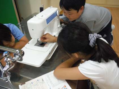 家庭科の学習では,「ミシンの使い方」を学習しています。