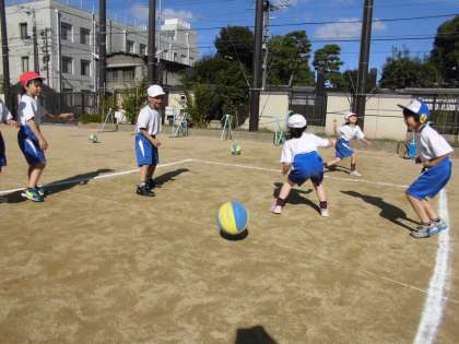 体育で,ころがしドッジボールの学習をしました。