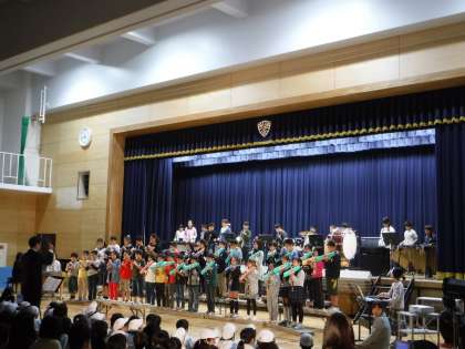 合唱や合奏に織り交ぜて,高学年として自分たちが頑張ってきたことを紹介してくれました。