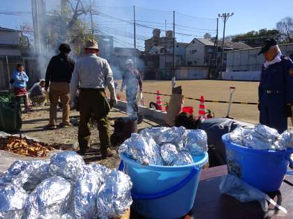 地域の方にお手伝いしていただいて,とても良い天気のなか,焼き芋パーティーをすることができました。