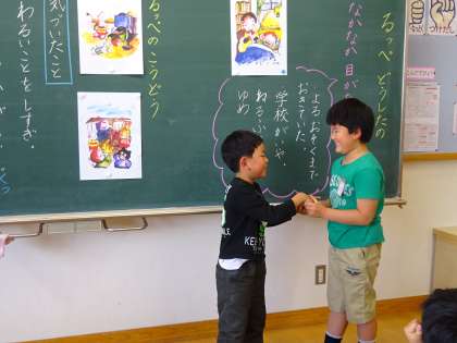 また「自分の中にも主人公と同じ部分はないかな?」との問いかけに,1人1人が自分の弱さを打ち明け,「直したい」「素直に聞きたい」と発言していました。