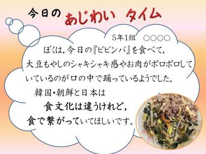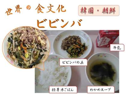 韓国・朝鮮の料理『ビビンバ』が今日の給食です。