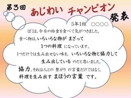 給食で,世界の国々の料理をあじわい,世界の食文化を学んでいます。