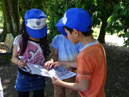 京都府立植物園では,班に分かれてオリエンテーリングをしました。各班で,地図を見ながらチェックポイントに向かいました。