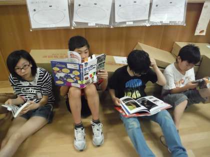 本を選び終わった後,子どもたちは興味をもった本を食い入るように読んでいました。