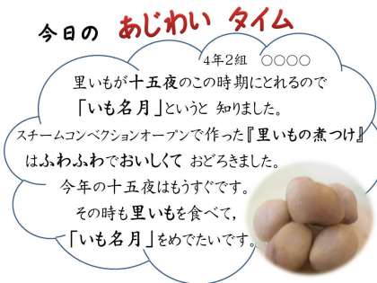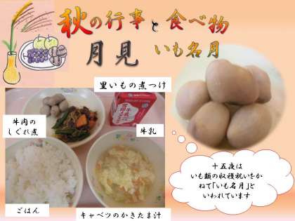 そこで,給食では『里いもの煮つけ』を月見献立に取り入れています。