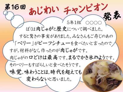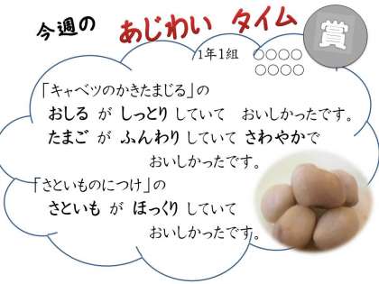 子どもたちは,目や耳・鼻・口,そして心でよく味わって毎日の給食をいただいています。そして,給食を食べた後,毎日素敵な感想がたくさん寄せられます。