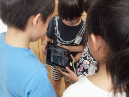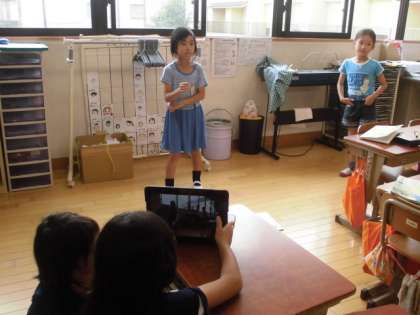 今回は,タブレットを使って音読の様子を撮影しながら,