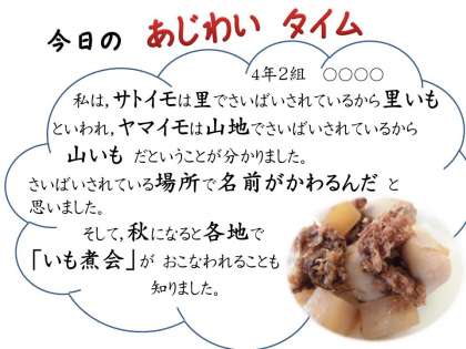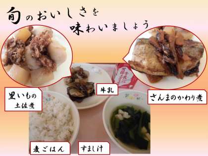 子どもたちは,今が旬の【秋刀魚】と【里いも】をみんなで楽しみながら味わいました。