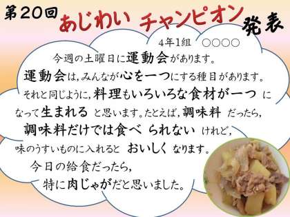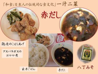 削り節や昆布でとった出汁のうま味・地元や旬の食材や昔から伝わるおかずなども大切にし,子どもたちの豊かな嗜好を育てています。