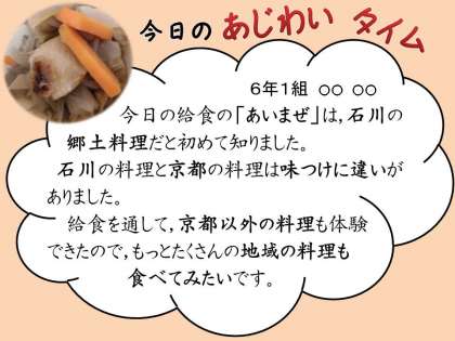 今日の給食の「あいまぜ」は,石川県の郷土料理です。