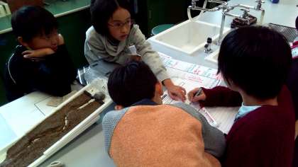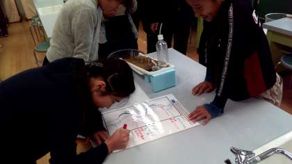 流れている水にはどんなはたらきがあるのかを確かめる流水実験を行いました。それぞれのグループで,川の道筋を考えたり,結果を予想したりして学習に取り組みました。それぞれのグループで協力して実験に取り組む姿を見ることができました。