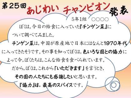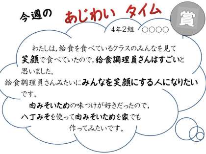 今日も給食の時間に,「いただきます」「ごちそうさま」と子どもたちの声が教室に響いていました。